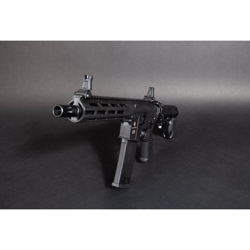 The rifle features the innovative CarbonTech™ technopolymer body and handguard, which provides exceptional durability and impact resistance while keeping the overall weight impressively low at just 2.3 kg. With a compact overall length of 655 mm (retracted) / 740 mm (extended), the 10” barrel version is highly manoeuvrable and perfectly suited for fast-paced CQB as well as versatile outdoor skirmishes.