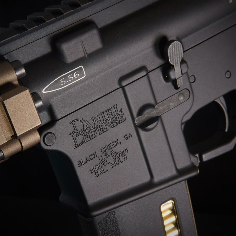 - Milspec+ (Flat Dark Earth) Genuine Daniel Defense grip and stock, licensed RIS II aluminum quad rail